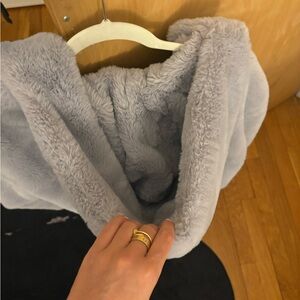 Soft and plush faux fur coat. Ideal for warmth and comfort. Stylish choice for cold weather.