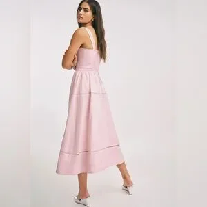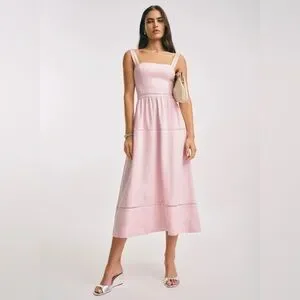 New Reformation Everett Midi Linen Sleeveless Dress - Size 6 Cherry Blossom Pink