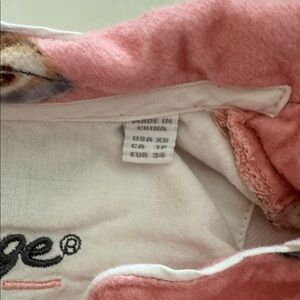 New w/o tags. Never worn. Charming pink pajama set with espresso martini design. Features button-up top and drawstring pants. Ideal for relaxation. Size extra small