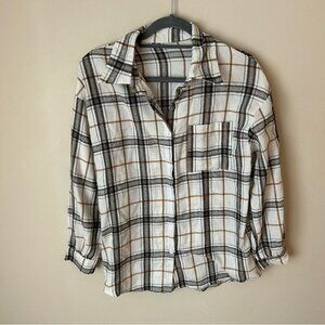 NWOT SHEIN Black White Oversized Plaid Flannel Button Down Shirt Women’s Small