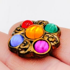 4 large vintage button with a gold base, symmetrical floral design and 5 colored stones.
