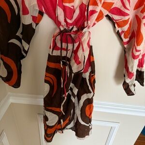 Y2K 100% Cotton Groovy Summer Vibrant Cinch Waist 3/4-Sleeve Swimsuit Coverup