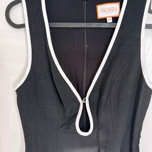 Elevate your wardrobe with this chic Vacanza dress. Featuring a classic black design with elegant white accents, it's perfect for any occasion.