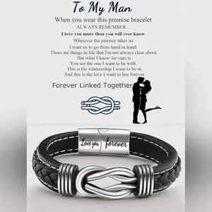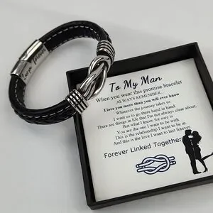 "To My Man.... When you wear this promise bracelet ALWAYS REMEMBER...I love you more than you will ever know. Wherever the journey takes us. I want us to go hand on hand. There are things in life that I'm not always clear about, but what I know for sure is you are the one I want to be with. This is the relationship I want to be in. And this is the love I want to last forever. Forever Linked Together"