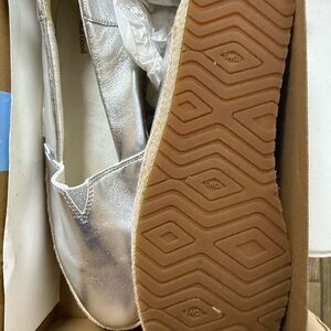 Shimmering metallic silver finish. Classic espadrille design. Comfortable and stylish for any occasion. These were a possible return. Look just tried on. Size 8