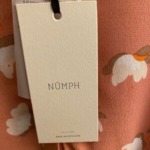 NWT NUMPH Pink Floral Patterned Dress with Belt and Short Sleeves
