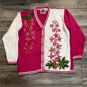 Storybook Knits Floral Snapdragon Embroidered Cardigan Size M