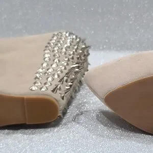 Jeffrey Campbell Aubrey spike Chic beige wedges with striking silver studs. Perfect for adding edge to any look.