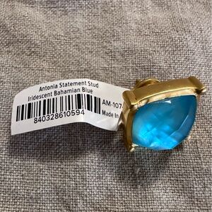 Chic square Julie Vos Antonia Statement Stud Earrings in Iridescent Bahamian Blue. This style is no longer being made and these earrings are brand new, never worn, with tags.