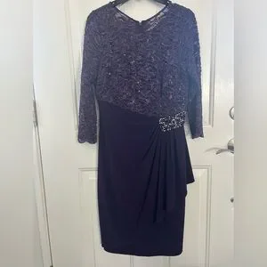Alex Evenings Elegant Purple Long Sleeve Lace Dress Size 8
