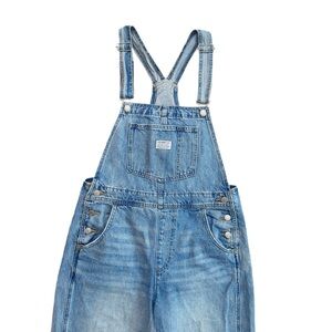 Classic Levi’s women’s denim overalls in a light wash with a stylish distressed finish for a relaxed, vintage-inspired look.