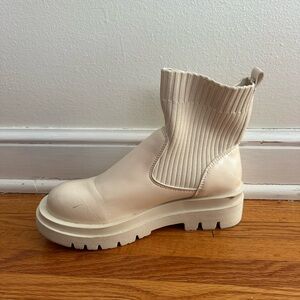 Stylish off-white booties with ribbed detail. Versatile and comfortable for any outfit. Been worn very little