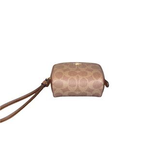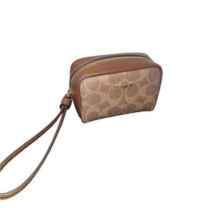 Coach NWOT Signature Canvas Pouch Wristlet. This little pouch wristlet is crafted of Signature coated canvas that's durable for every day. This designer wristlet is the perfect size to carry your small essentials like your favorite lipstick, makeup or even cash. Features a handy wrist strap for on the go and zip top closure. Interior is fabric lining clean no rips or stains.