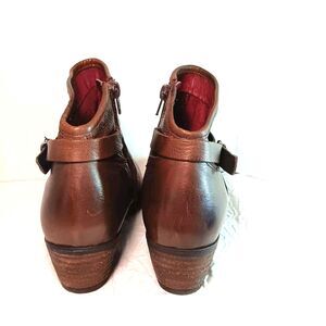 Umberto Raffini Alexa booties, Size 9 US, these ankle booties feature a rich brown color crafted with leather uppers. Rubber sole buckle strap zipper closure and block heel 2in high. The UK size 8.5 and EU size 42 excellent pre-owned condition
