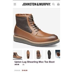 Johnston Murphy Upton Lug Shearling Moc Toe Dark Tan Waterproof Boot Men's 10.5