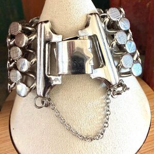 Vintage Silver-Tone Wide Panel Link Bracelet