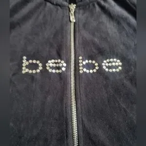 BEBE Black Velour With Rhinestone Y2K Hooded Dress Size M