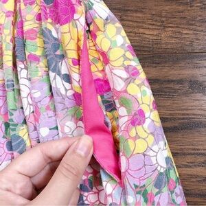 Gorgeous summer midi dress by Kate Spade New York. “Floral Dots Burnout” style in floaty 78% viscose, 22% polyamide burnout fabric ft vibrant floral pattern in pink, white, yellow, blue, purple, and green. Fully lined. Pleated shoulder detailing, v-neck, fitted waist, and full gathered skirt. Back zip. Bust 36“, waist 28.5“, length 46.5“. Size 4, great preowned condition - missing original waist tie, looks fabulous worn without or paired with any coordinating ribbon or belt.