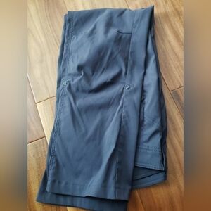 Stylish and comfortable women's gray pants, perfect for any occasion. Features button tabs to roll up and wear as capriis. Women's size 6. 87% nylon, 13% elastane. Great condition.