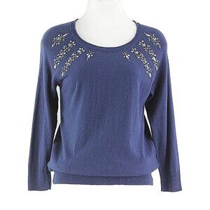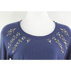 Apt.9 Sz S Navy Beaded Neckline 3/4 Sleeve Cotton Rayon Knit Nylon Top