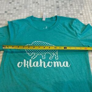 Oklahoma Bison Teal Cotton T-Shirt. Soft and light cotton material.