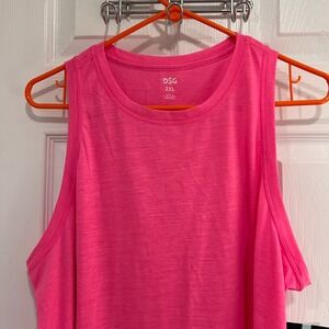 Keywords: DSG, athletic tank, workout top, gym wear, sleeveless, bright pink, activewear, casual, sporty, breathable, comfortable, plus size