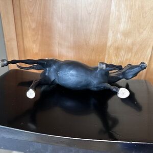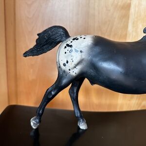 This Vintage Breyer Running Stallion in Black Appaloosa Color #127. Good vintage condition with a few rub marks on the end of the tail and end of the mane.