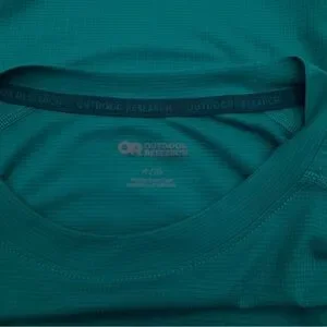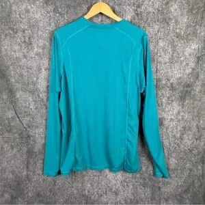 Teal performance shirt with logo detail. Lightweight and breathable.