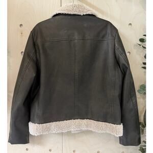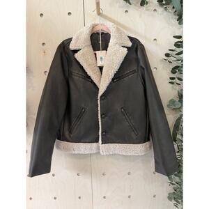 MOTHER The Mile High Aviator Jacket Size L NWT Brown Faux Leather Faux Sherpa