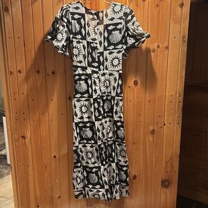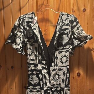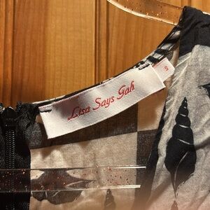 Lisa Says Gah Grace sun and she’ll dress. V neck with flutter sleeves and slight empire waist. Minor fading throughout, only one spot by v neck at chest where there is almost a reddish hue, I tried to picture it. In great overall condition and slightly wrinkled from storage. Stock photo added for reference from the website.