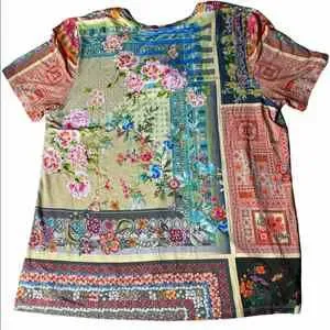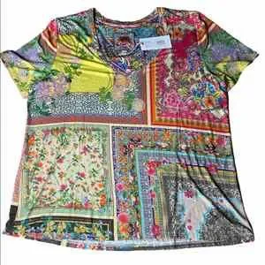 Johnny Was “Calloway” Multicolor Patchwork soft bamboo Tee. Gorgeous design!