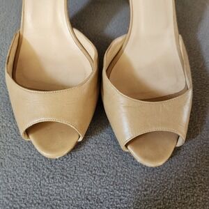 Details: D'Orsay silhouette, stiletto heel, open toe, leather upper and lining, wear on soles and heels as shown