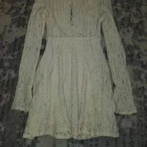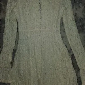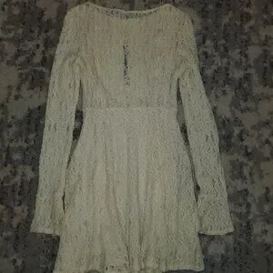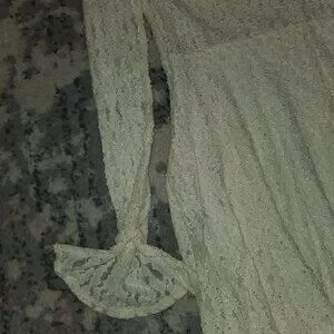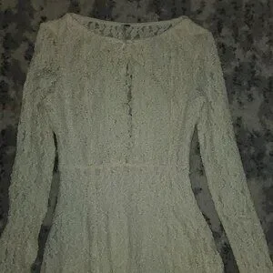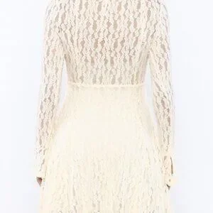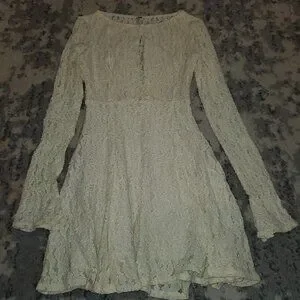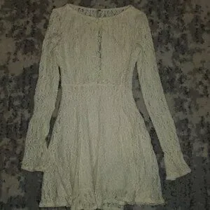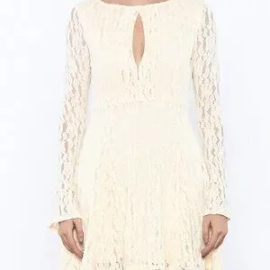 This all-over textured dress features a keyhole peek-a-boo in front and a slight bell sleeve at the cuff.