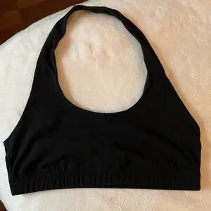 Aritzia TNA Butter halter-style sports bra in classic black.