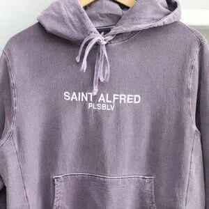 Saint Alfred Purple Embroidered Pullover Cotton Hoodie Sweatshirt Size Small