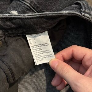 American Eagle Relaxed Mom Short with Comfort Stretch Waistband, button and zipper in front. 2 pockets in the back and 3 In the front. Distressed.