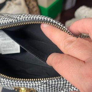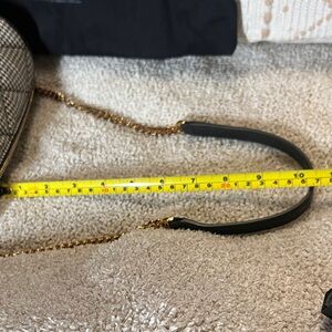 Chic Versace mini bag. Classic black and white houndstooth pattern. Gold-tone accents. Perfect for any occasion.