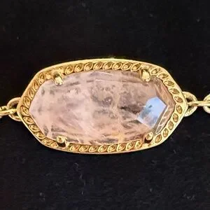 Stylish Kendra Scott bracelet. Features a light pink stone accent. Elegant gold chain. Bag included.