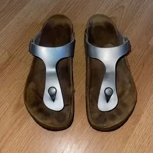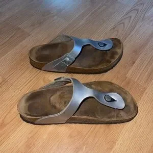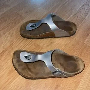 Birkenstock Silver Metallic Thong Toe / Slip On Sandals Size 39
