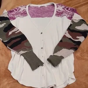 Chic Lucky Brand Cardigan with Camouflage and Purple Accents Size small