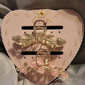 Capelli of New York LUXE Gold and Pink Floral Hair Clips LS m