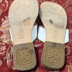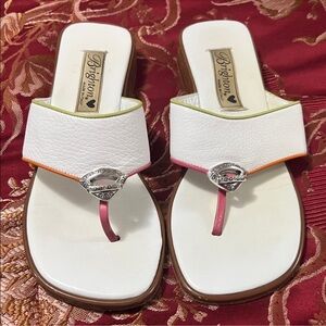 Brighton White Sandals with Pink Green Orange Trim