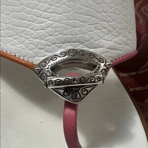 Elegant Brighton sandals in white. Features pink and orange trim. Silver detail for a stylish touch.
