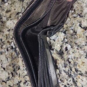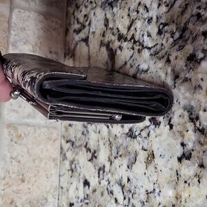 Card slots, ID window, bill pockets, kiss-lock coin pocket