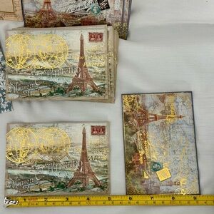 Set a 22 note cards, 11 of each style and 22 gorgeous coordinating envelopes. They have gold accents on the front. They are from a smoke free estate.