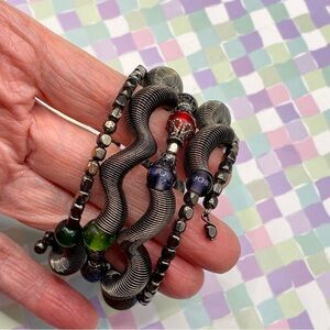 Memory Wire Wide Wrap Gunmetal Glass Beads Bracelet. Boho style bracelet in great condition, has been worn but still unique and nice. #37