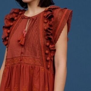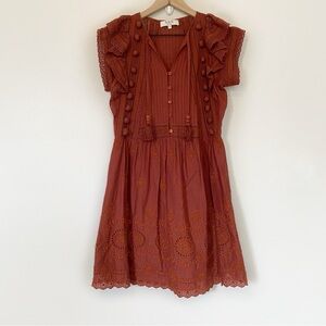 SEA New York Boho Sofie Dress Lace Pom Poms Clay Red Brown size 0