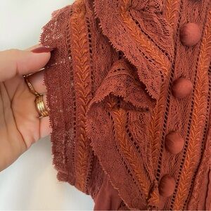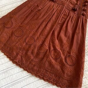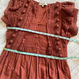 SEA New York Boho Dress Lace Pom Poms Clay Red Brown size 0