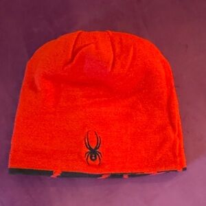 Spyder Black Red Web Pattern Beanie Reversible Ski Winter Hat One Size Fits All