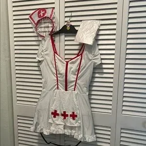 # 0763+ Women’s Nurse Costume - White and Red Set